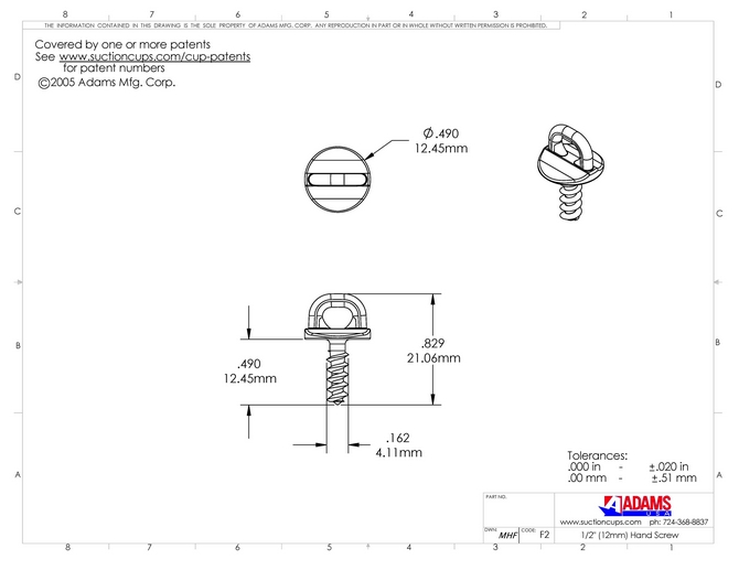 Suction Cups. Side pilot hole
