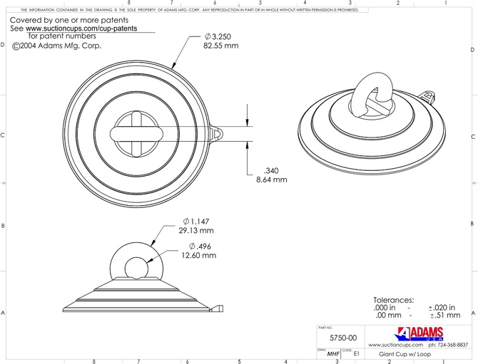 Technical Drawing. 85mm Heavy Duty Suction Cup with Loop.